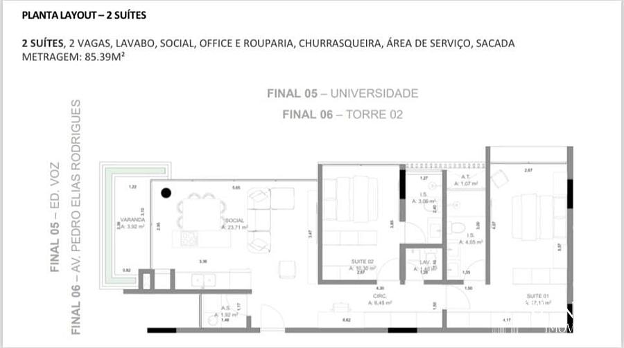 85,00 m² de área privativa