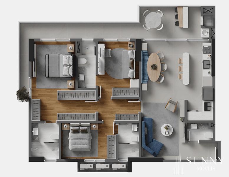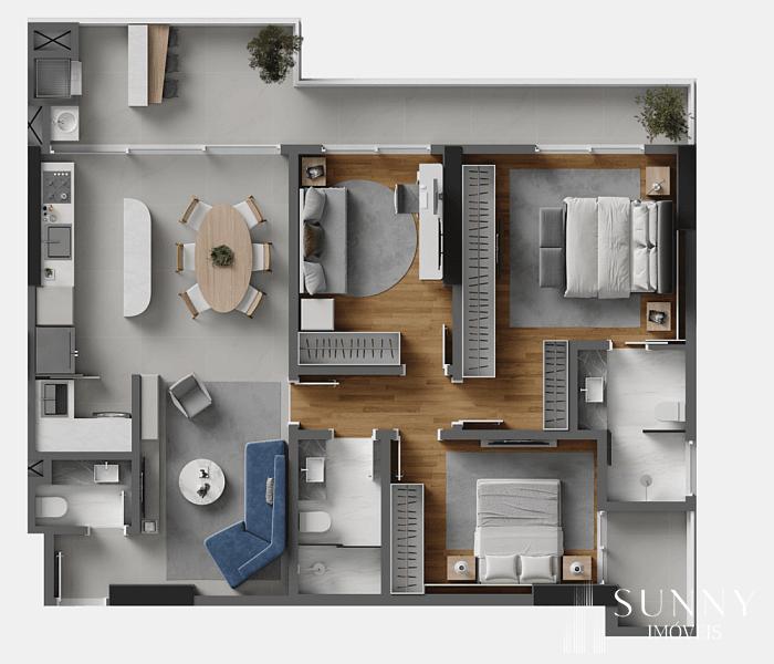 3 dormitórios (1 suíte)